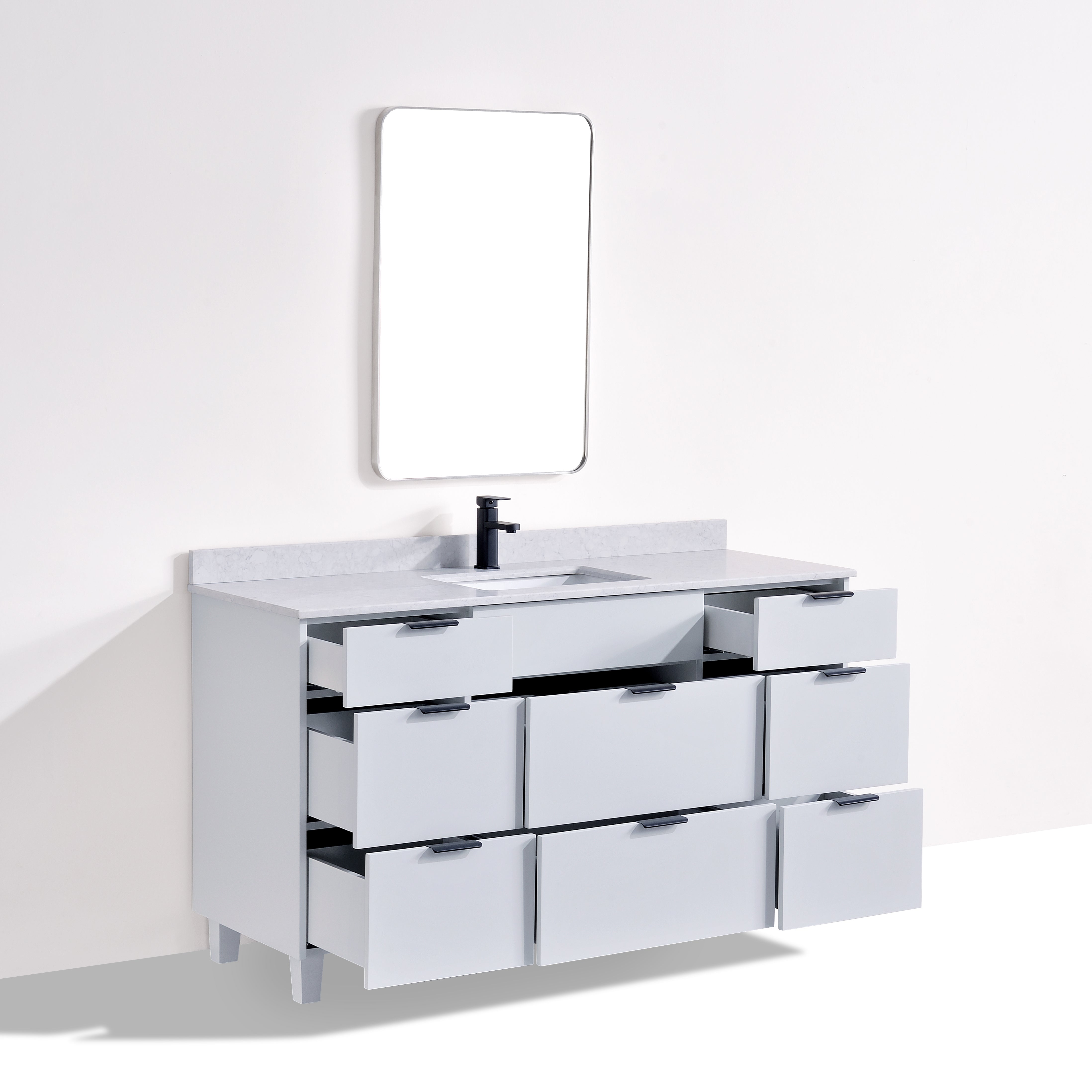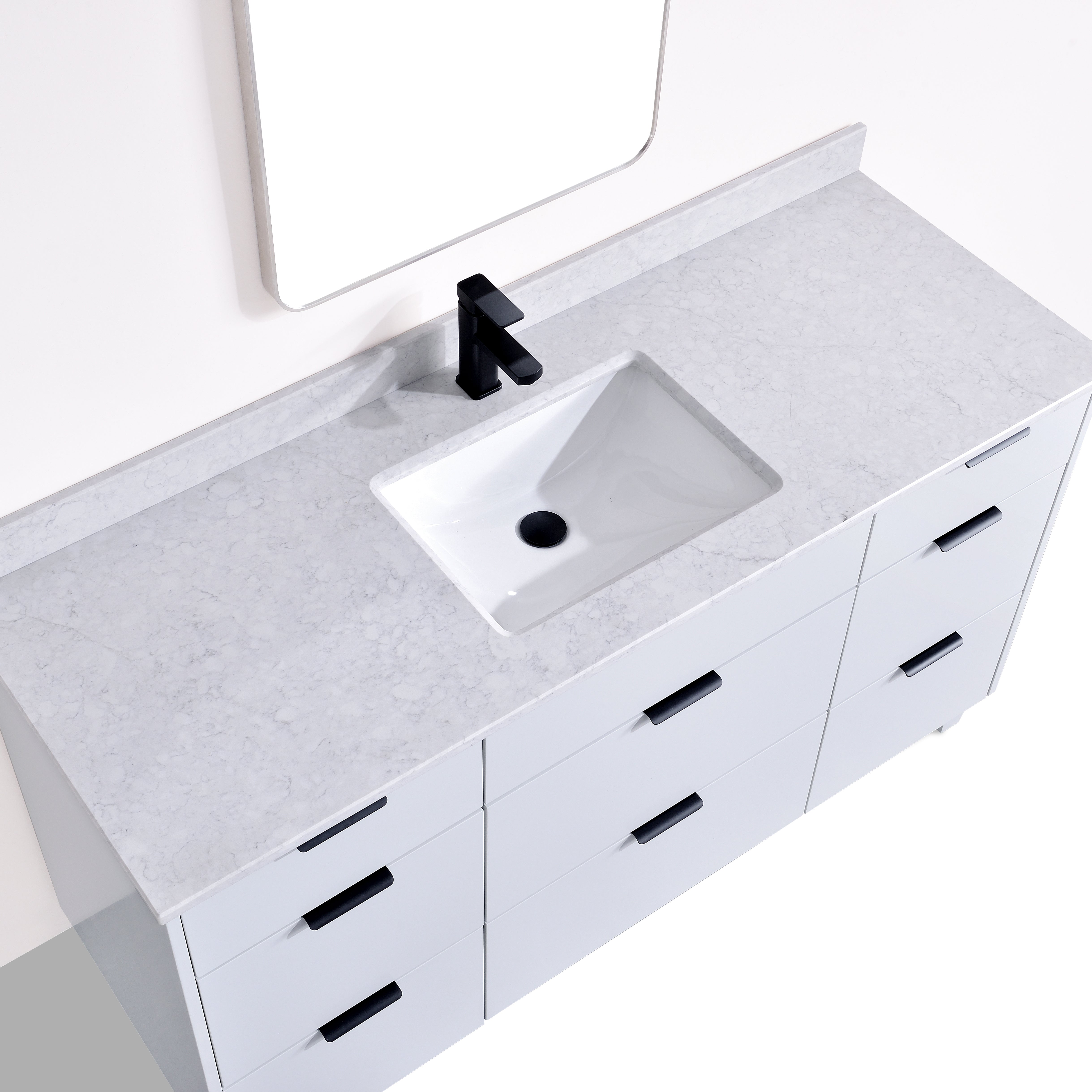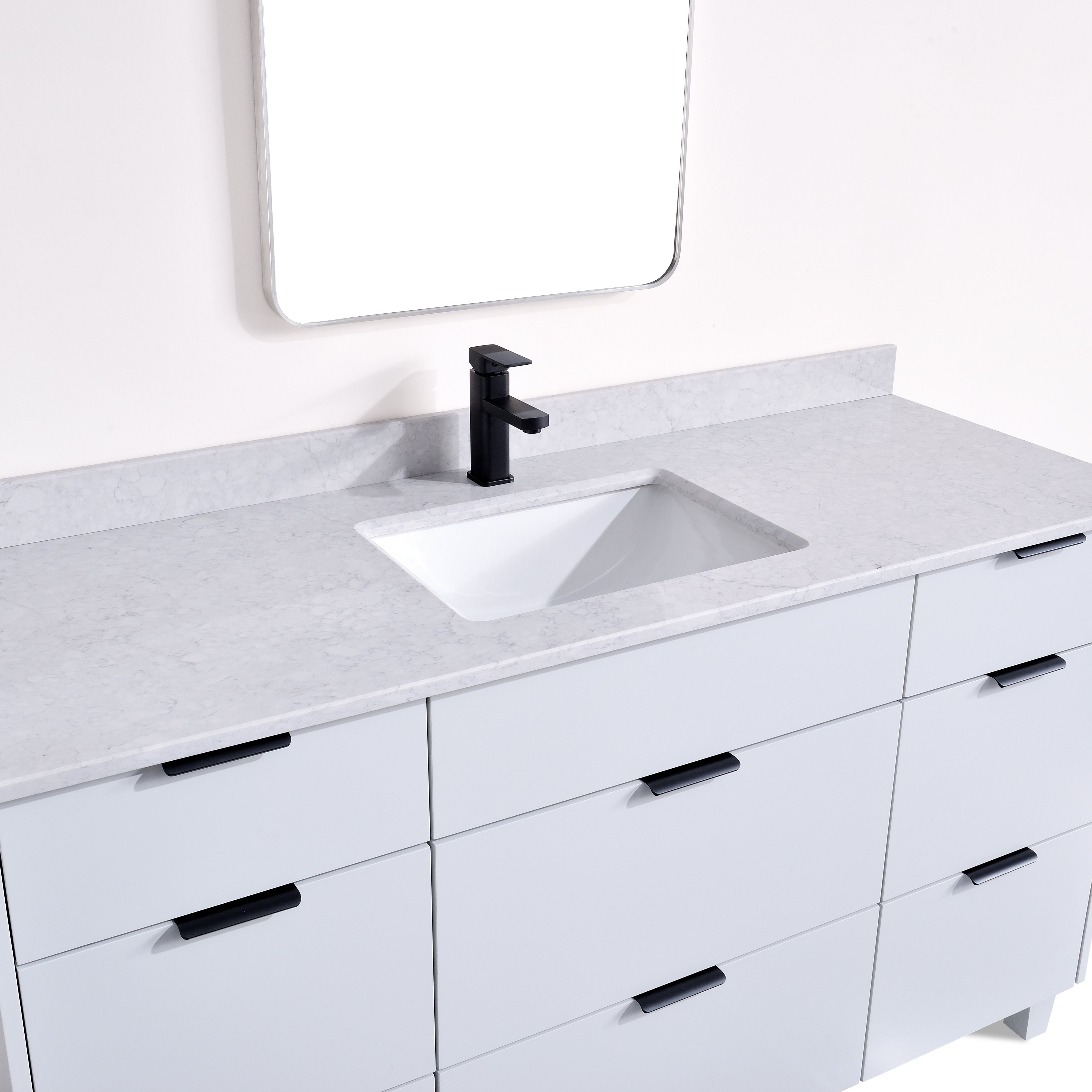 Premium Solid Quartz Countertop: A durable, non-porous quartz surface resists stains, moisture, and daily wear while delivering a clean, upscale look. Easy to maintain and built to last, it brings long-term value to any bathroom.