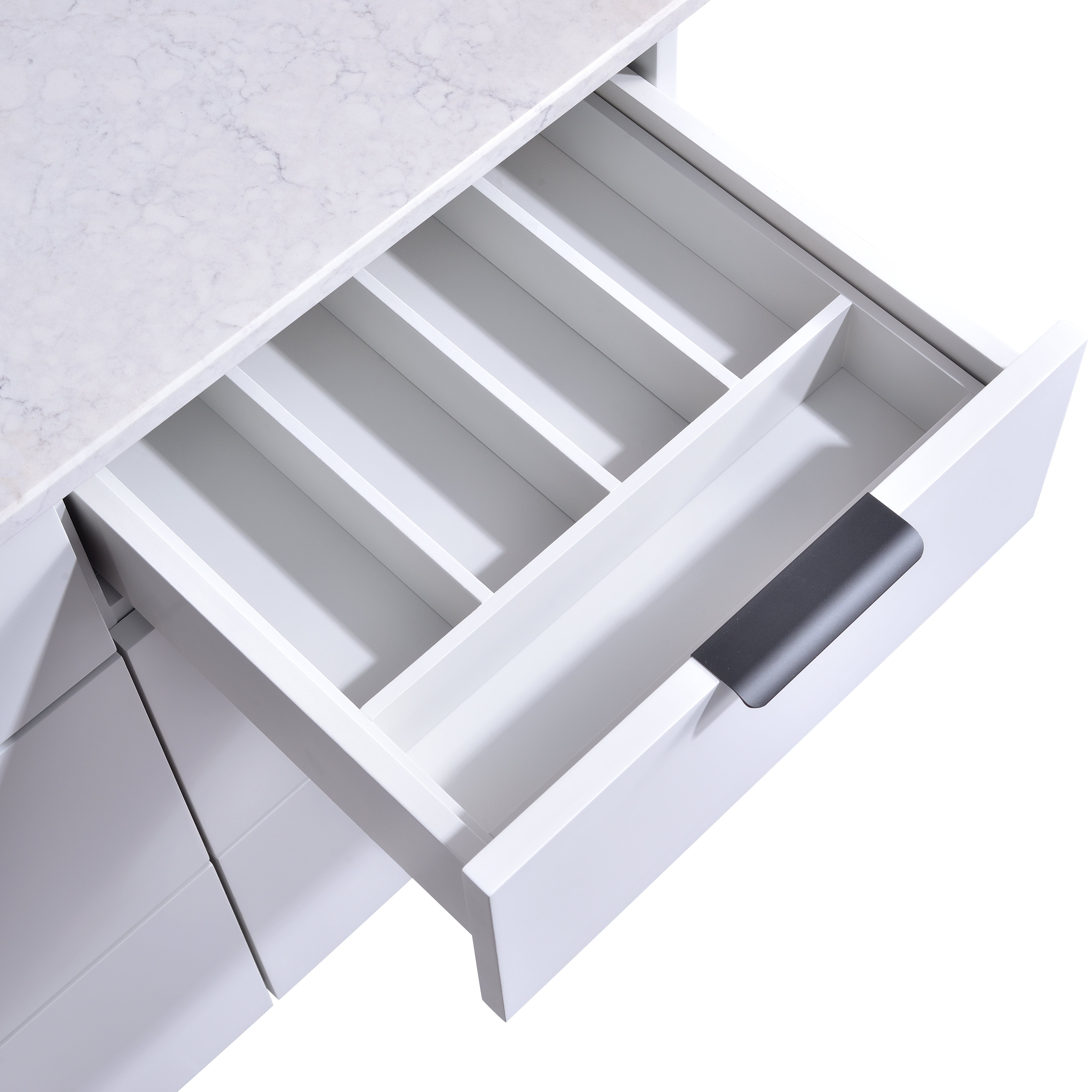 Smart Storage with Soft-Close Convenience: Spacious drawers and cabinets equipped with soft-close hardware keep daily essentials neatly organized and easily accessible. The thoughtfully designed layout maximizes storage without sacrificing style or functionality.