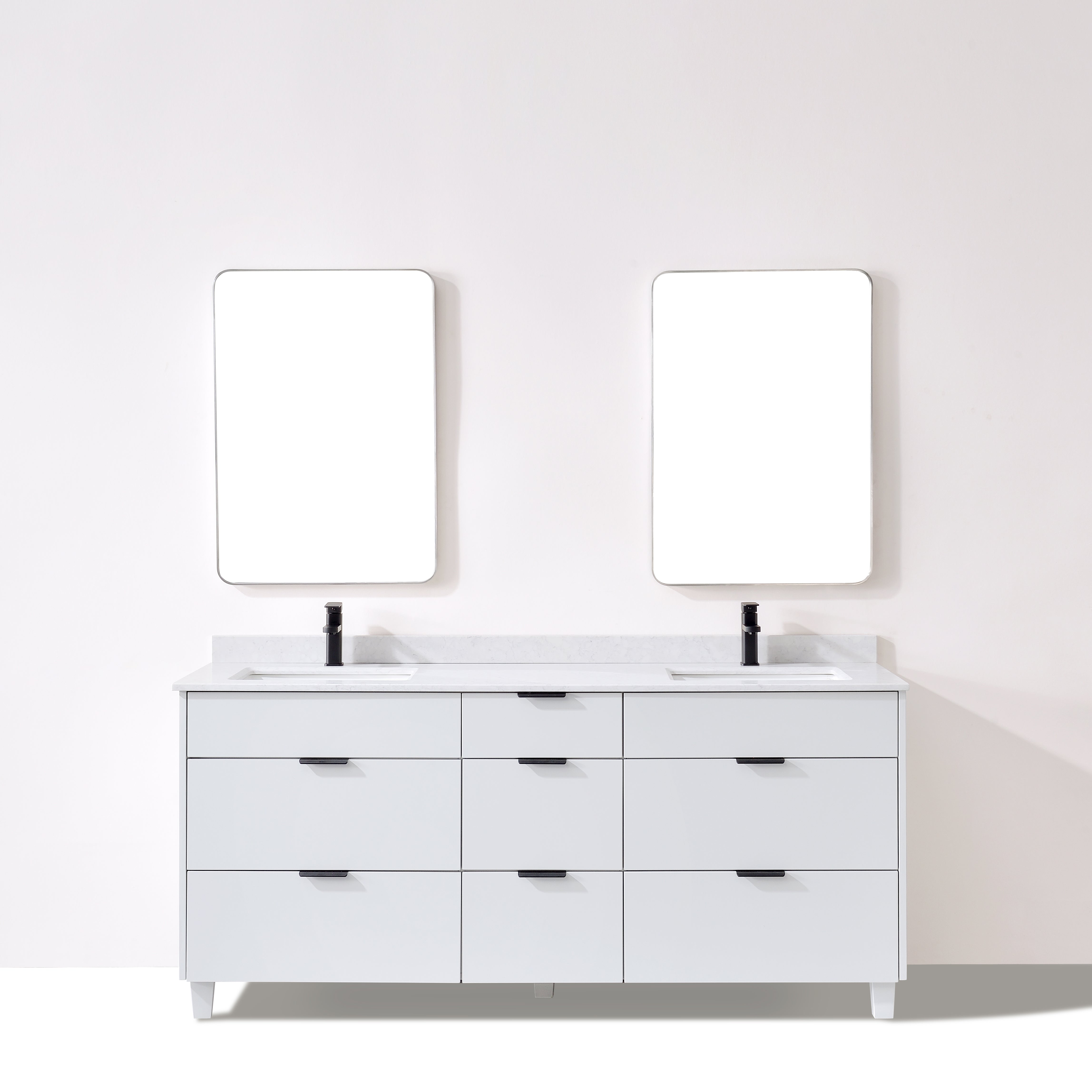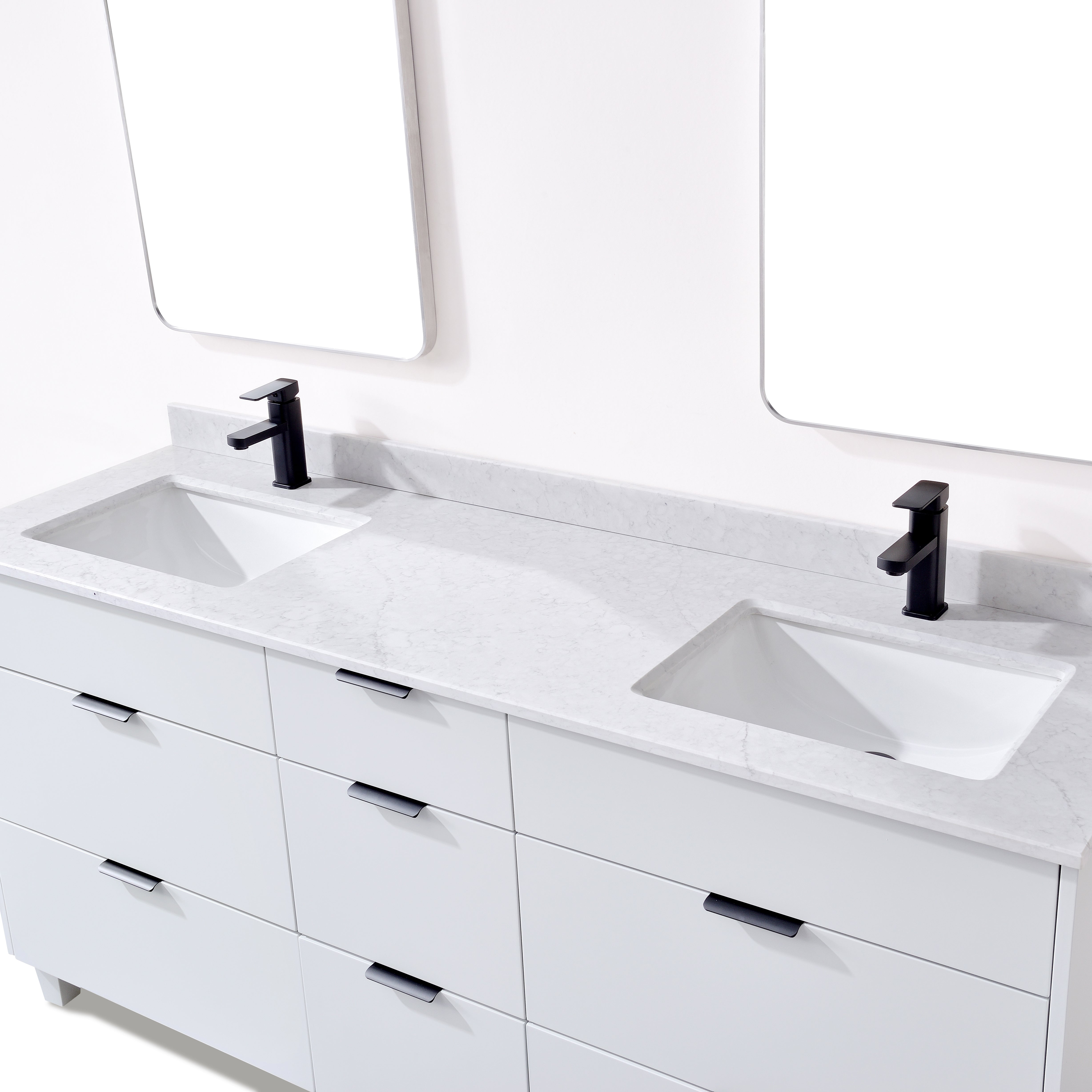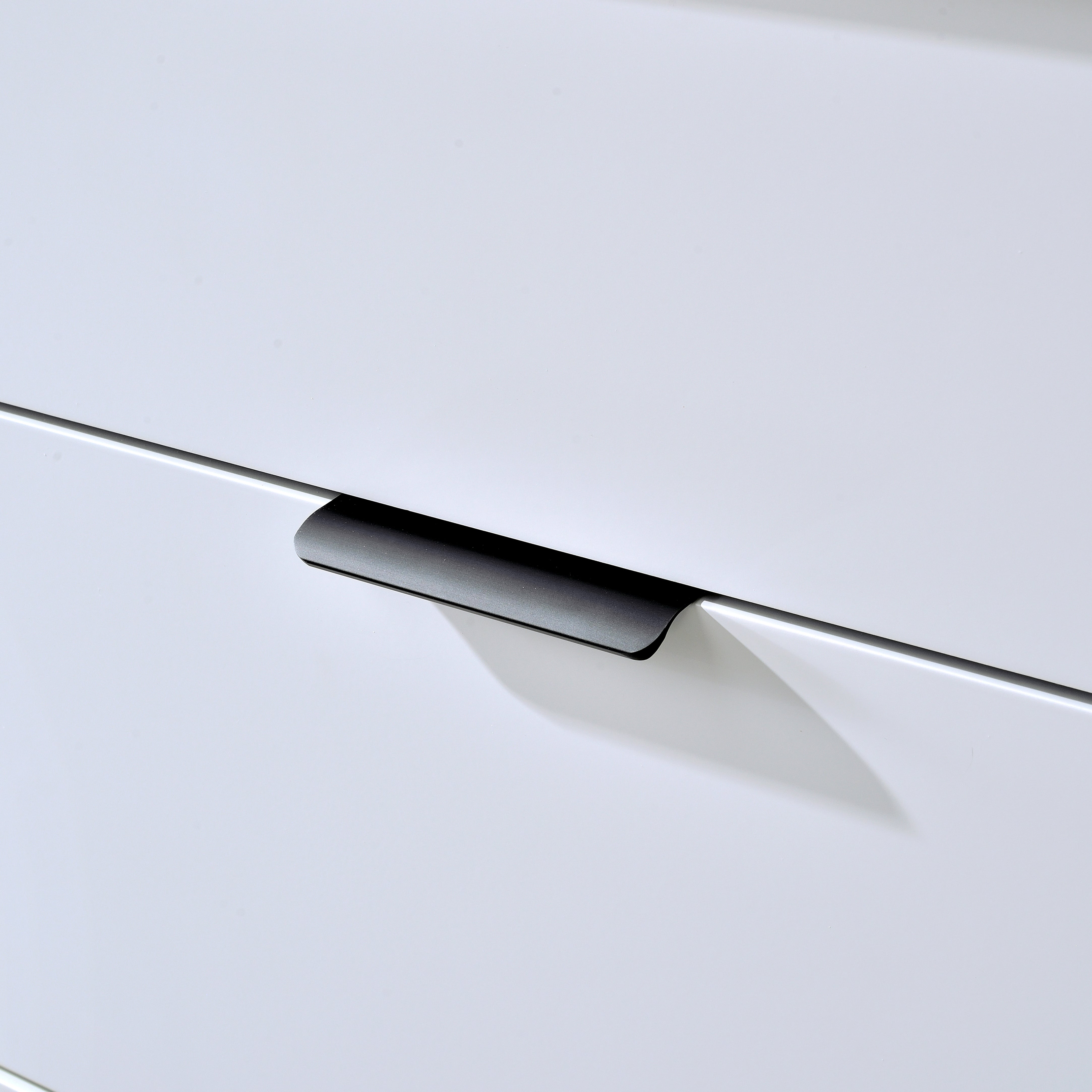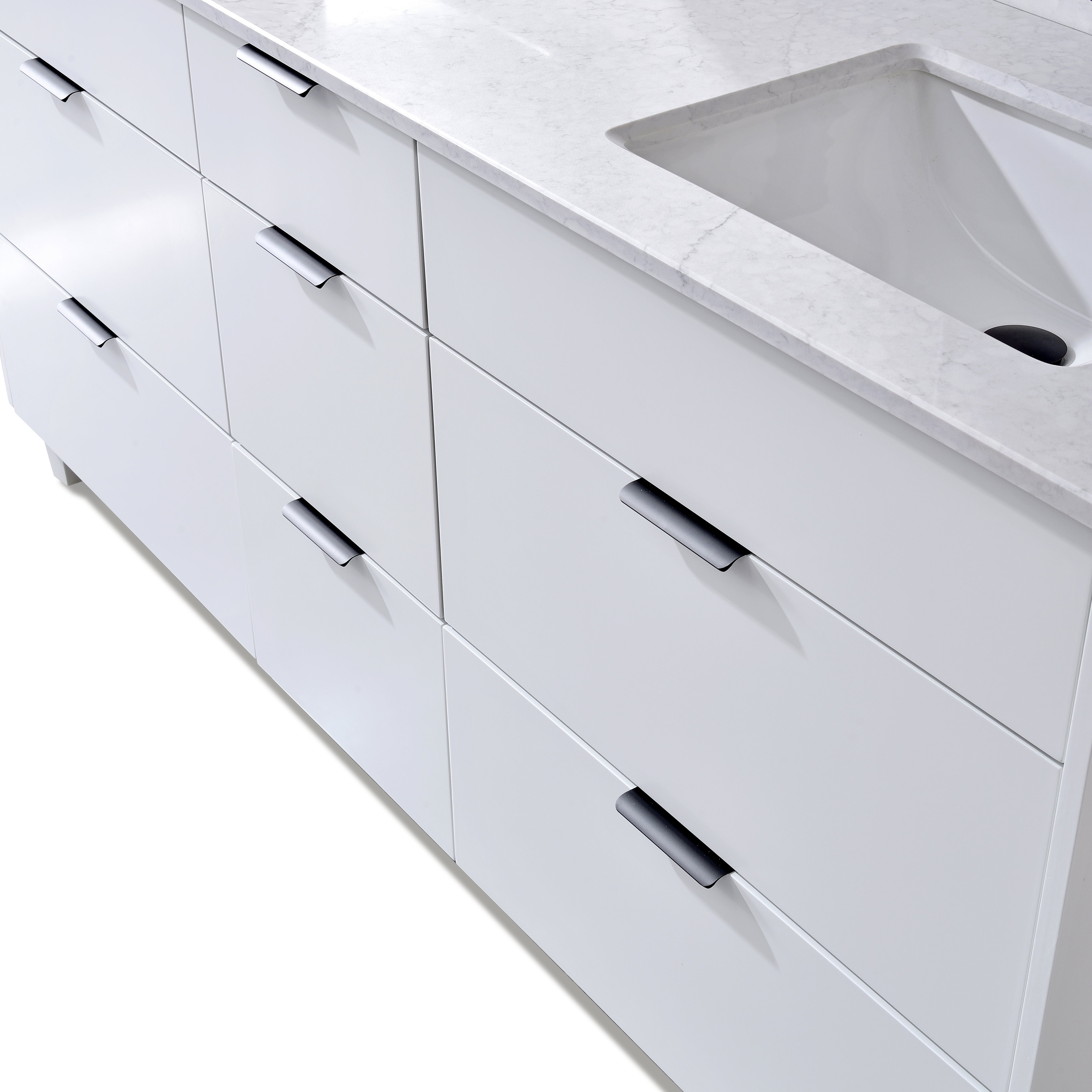 Sleek Modern Design with Black Hardware: Seamless drawer fronts paired with refined black pulls create a crisp, contemporary look. The clean lines and minimalist detailing make this vanity a perfect fit for modern bathrooms while remaining versatile enough for transitional spaces.