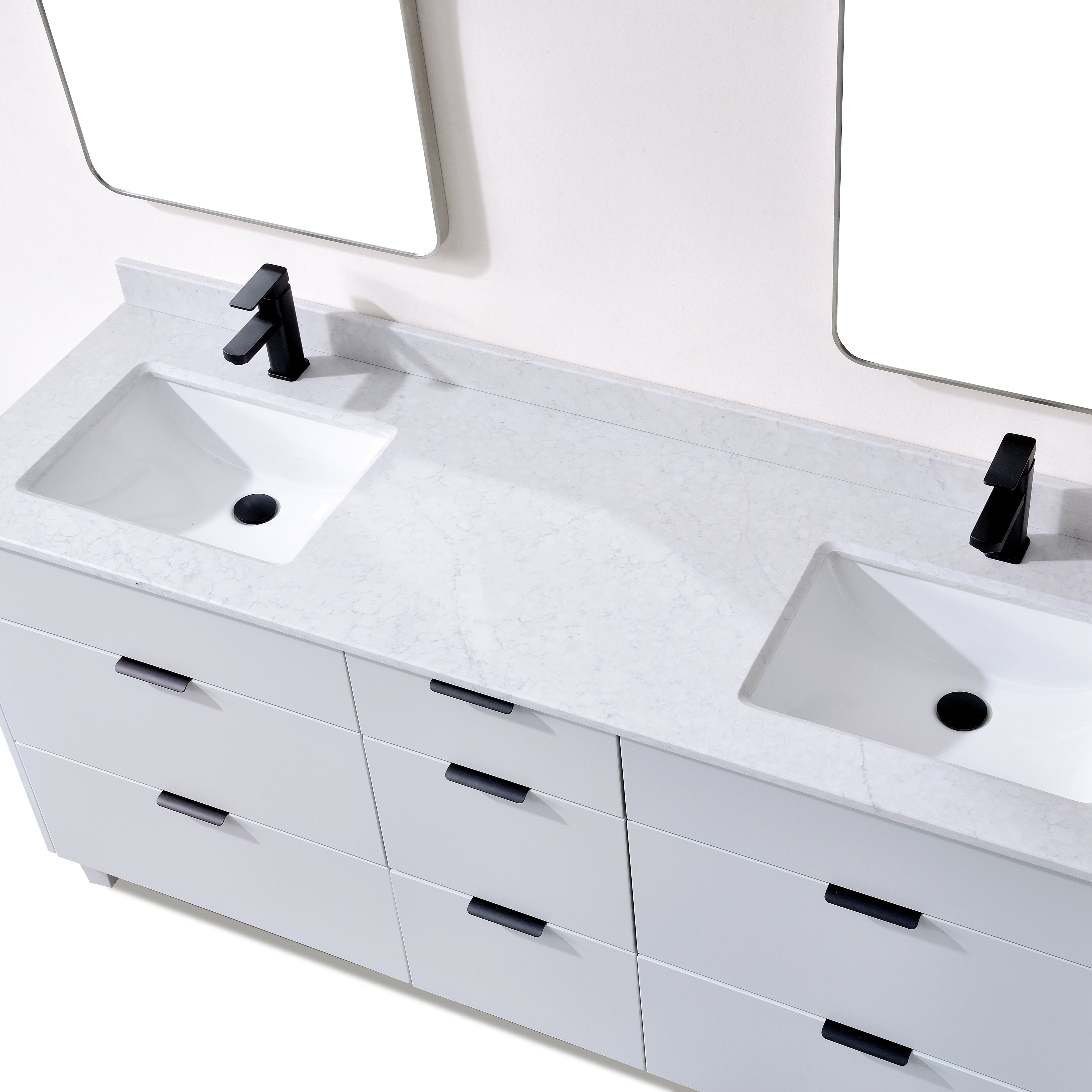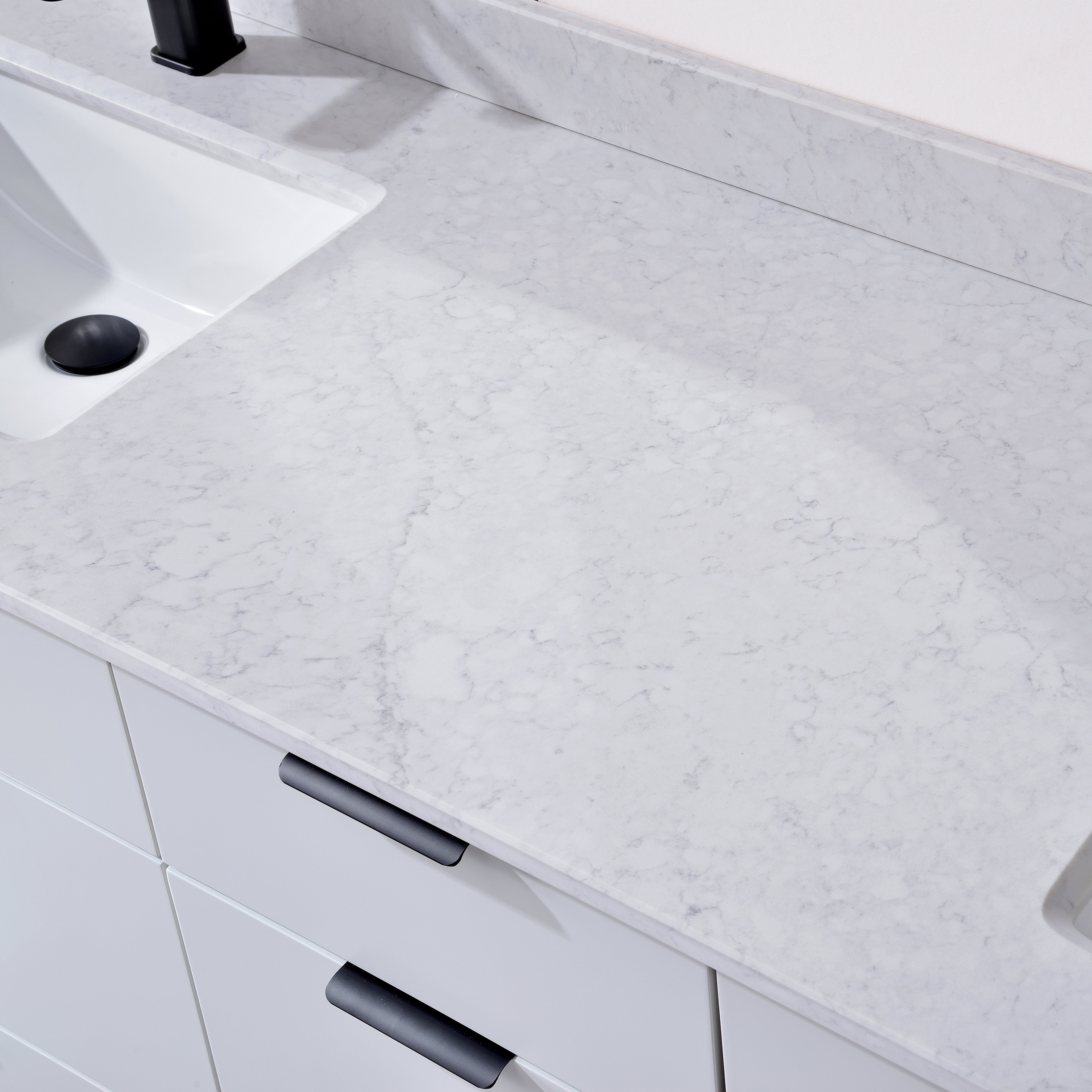 Premium Solid Quartz Countertop: A durable, non-porous quartz surface resists stains, moisture, and daily wear while delivering a clean, upscale look. Easy to maintain and built to last, it brings long-term value to any bathroom.