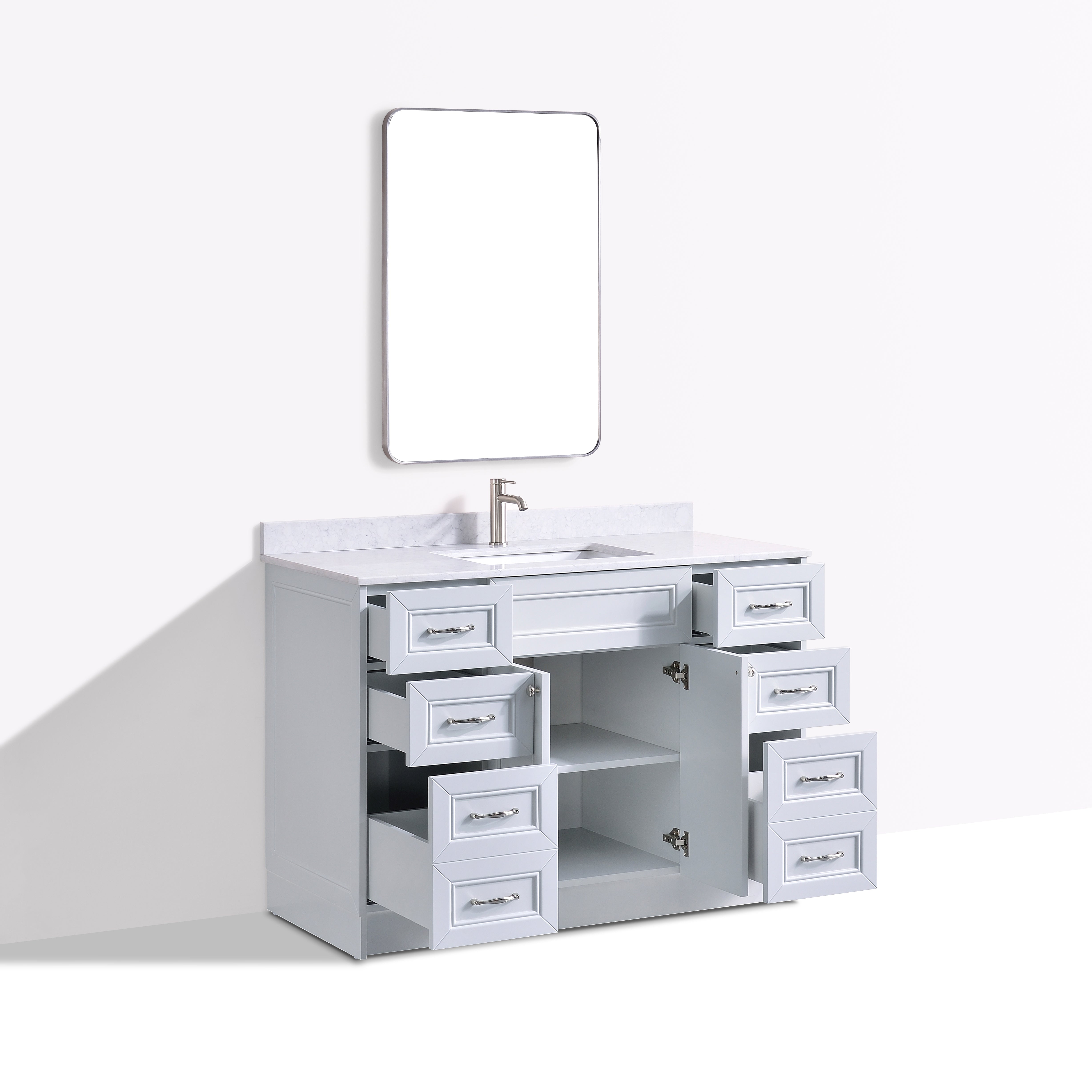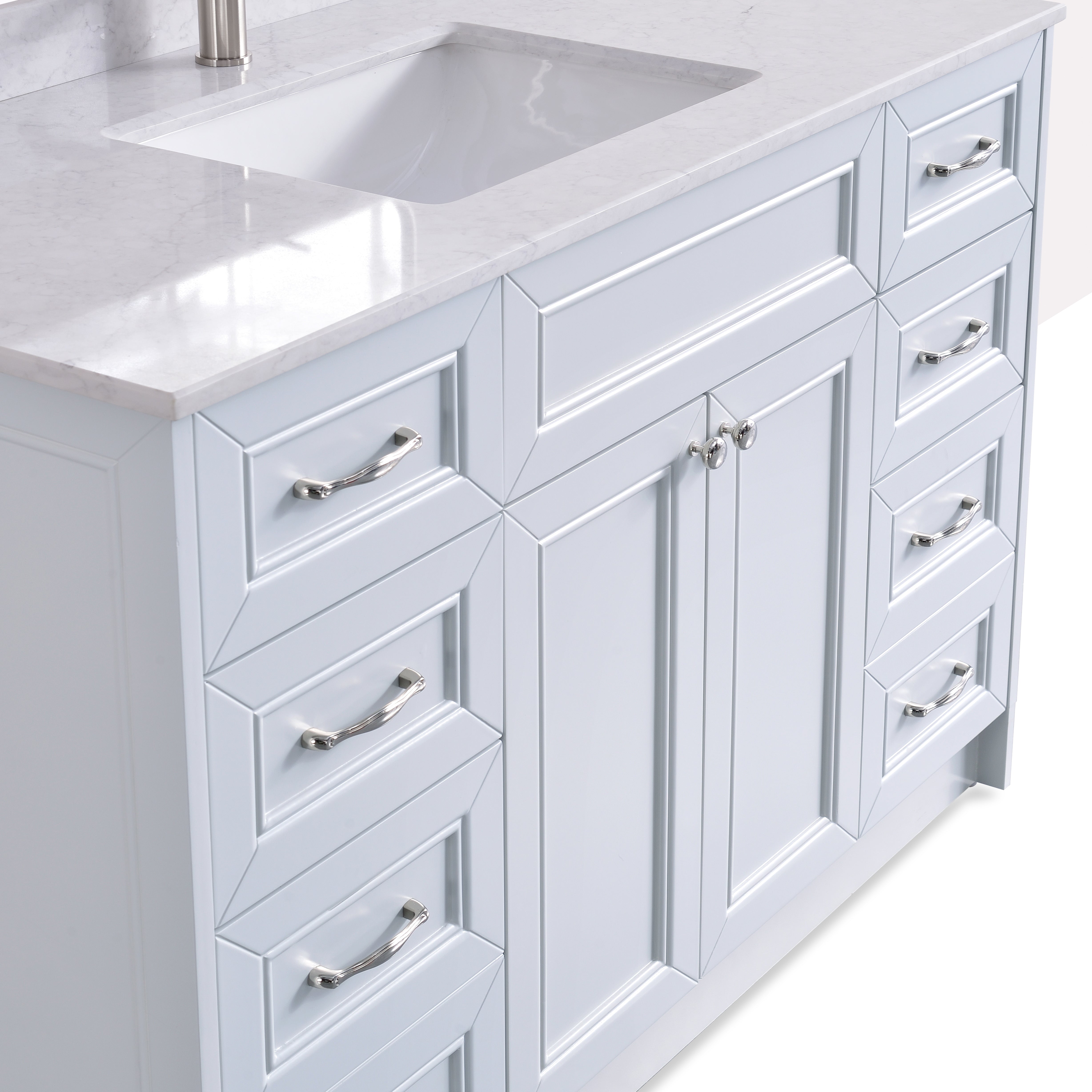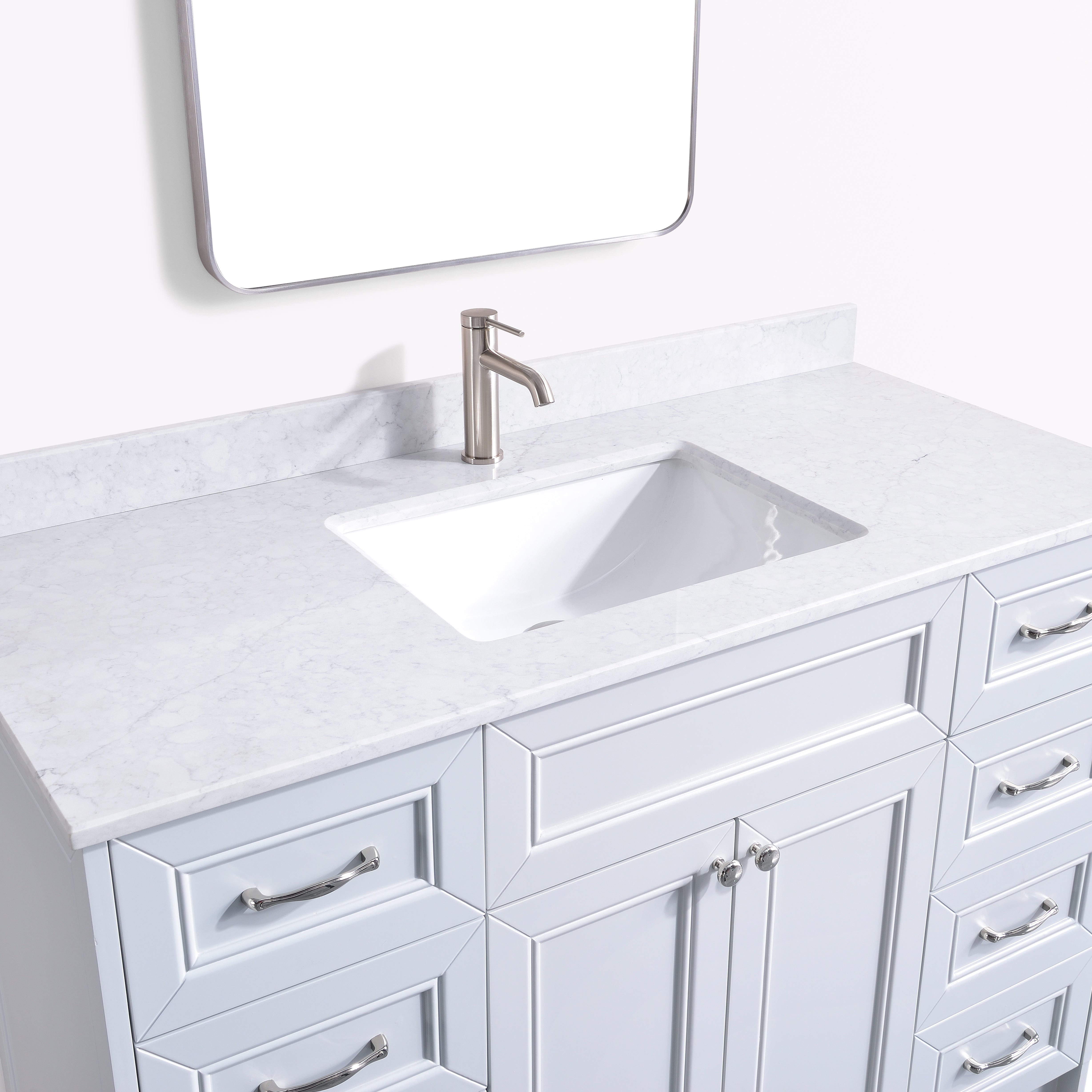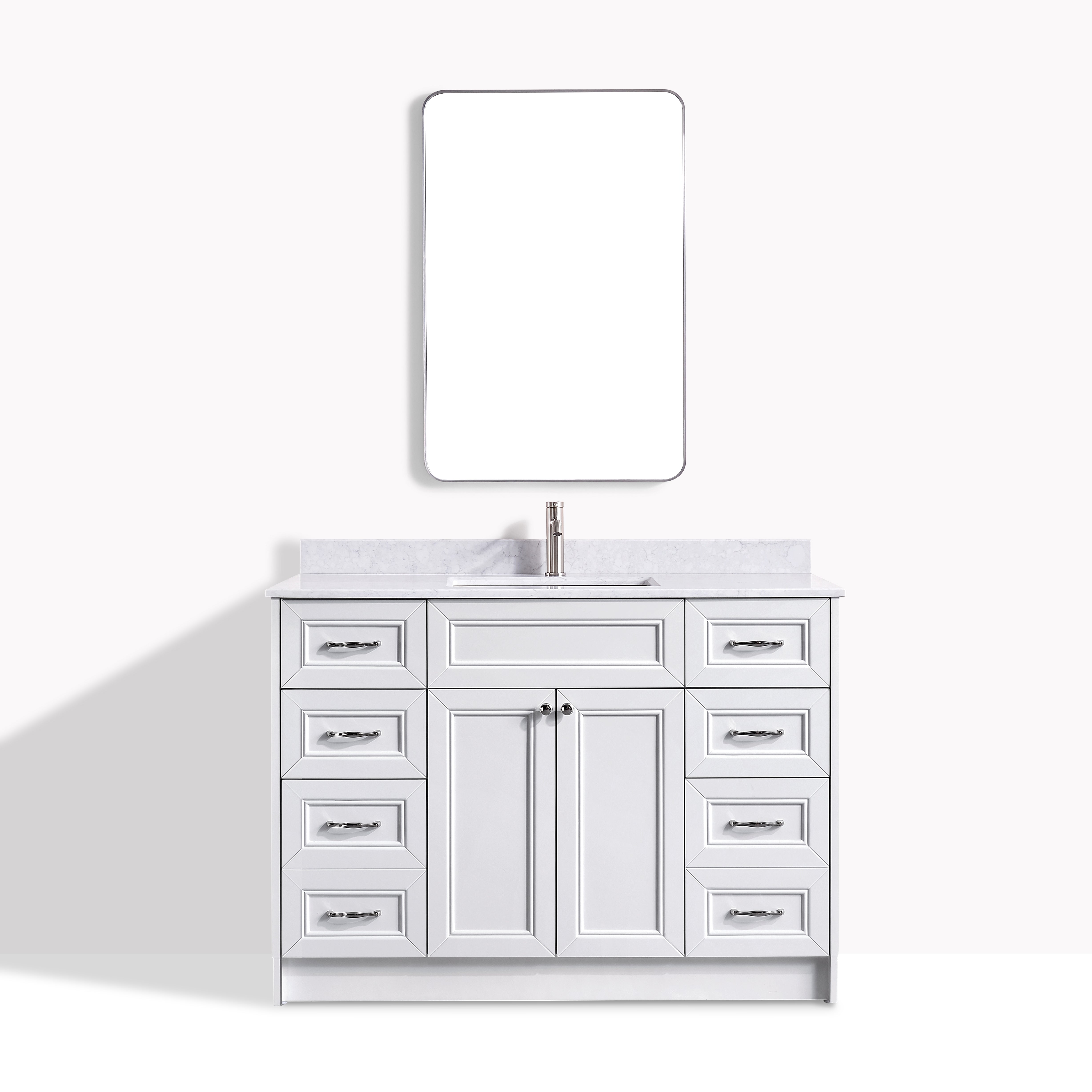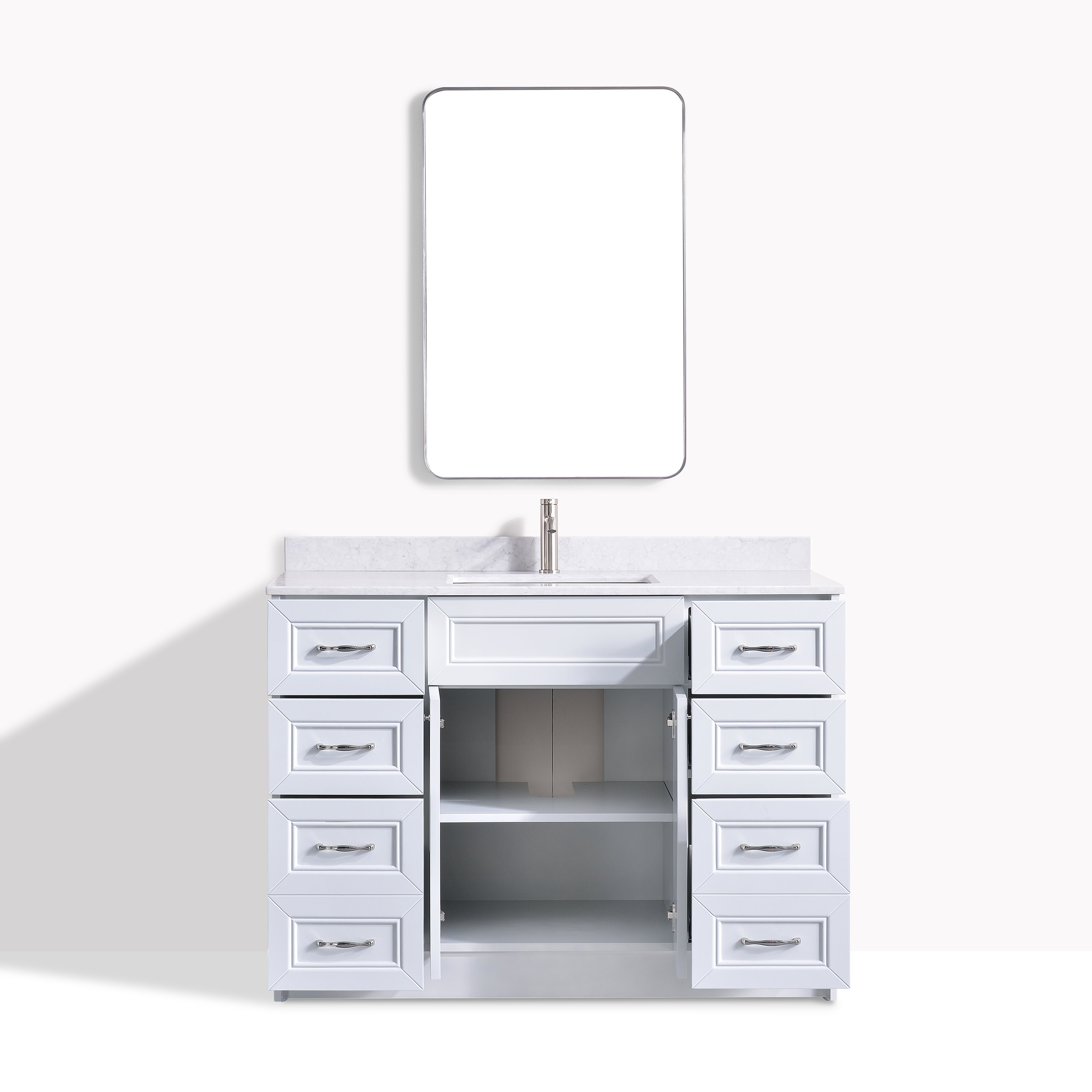 Premium Solid Quartz Countertop: A durable, non-porous quartz surface resists stains, moisture, and daily wear while delivering a clean, upscale look. Easy to maintain and built to last, it brings long-term value to any bathroom.