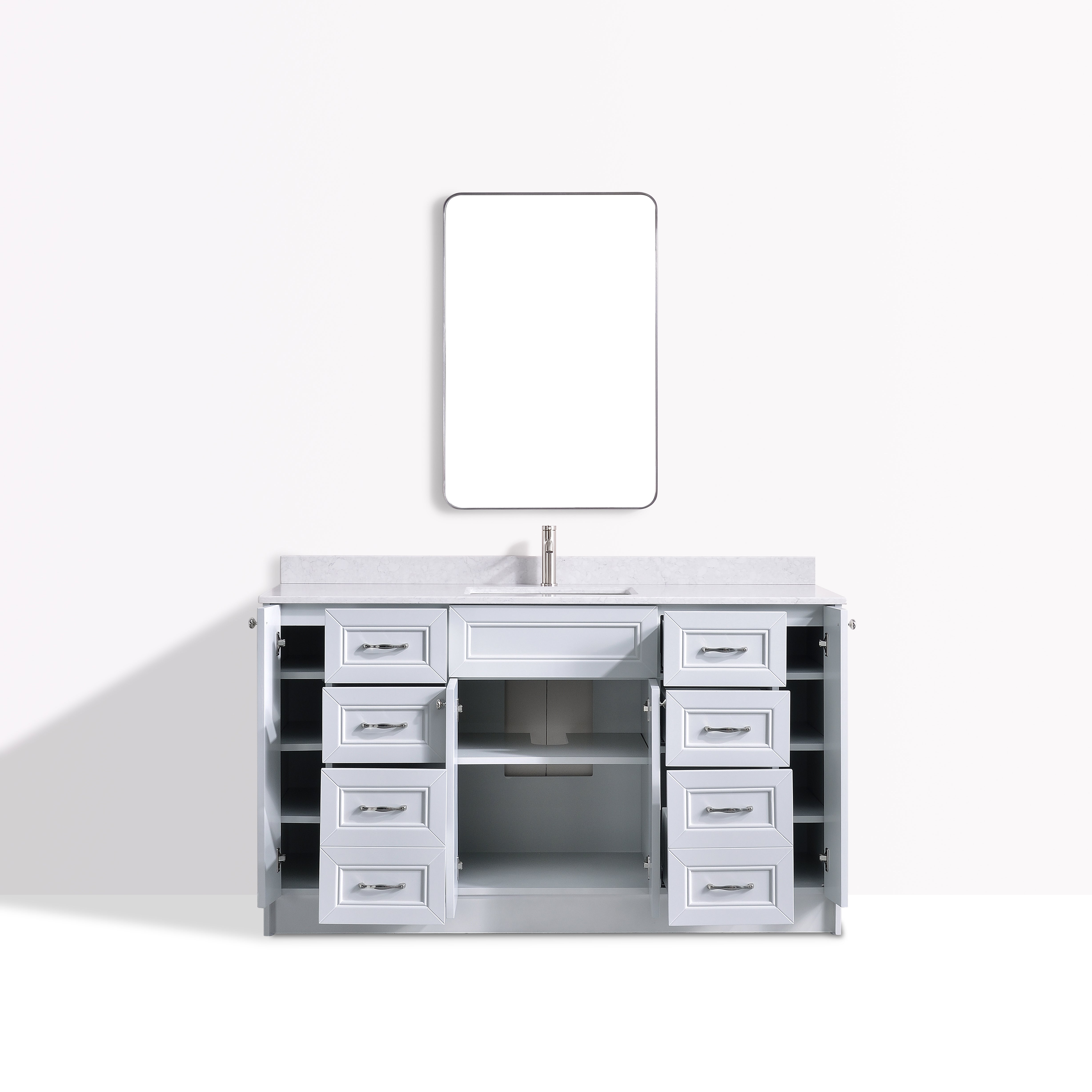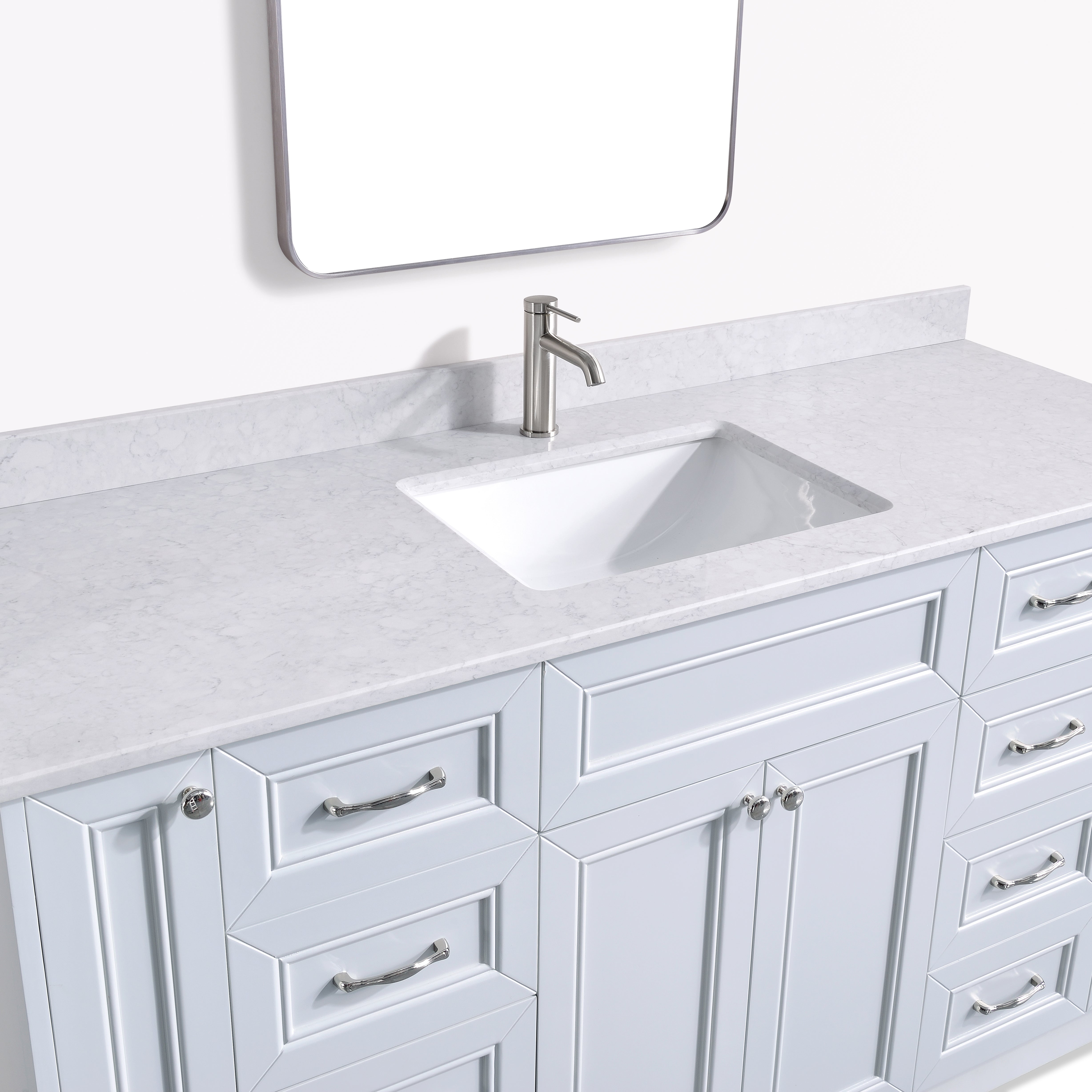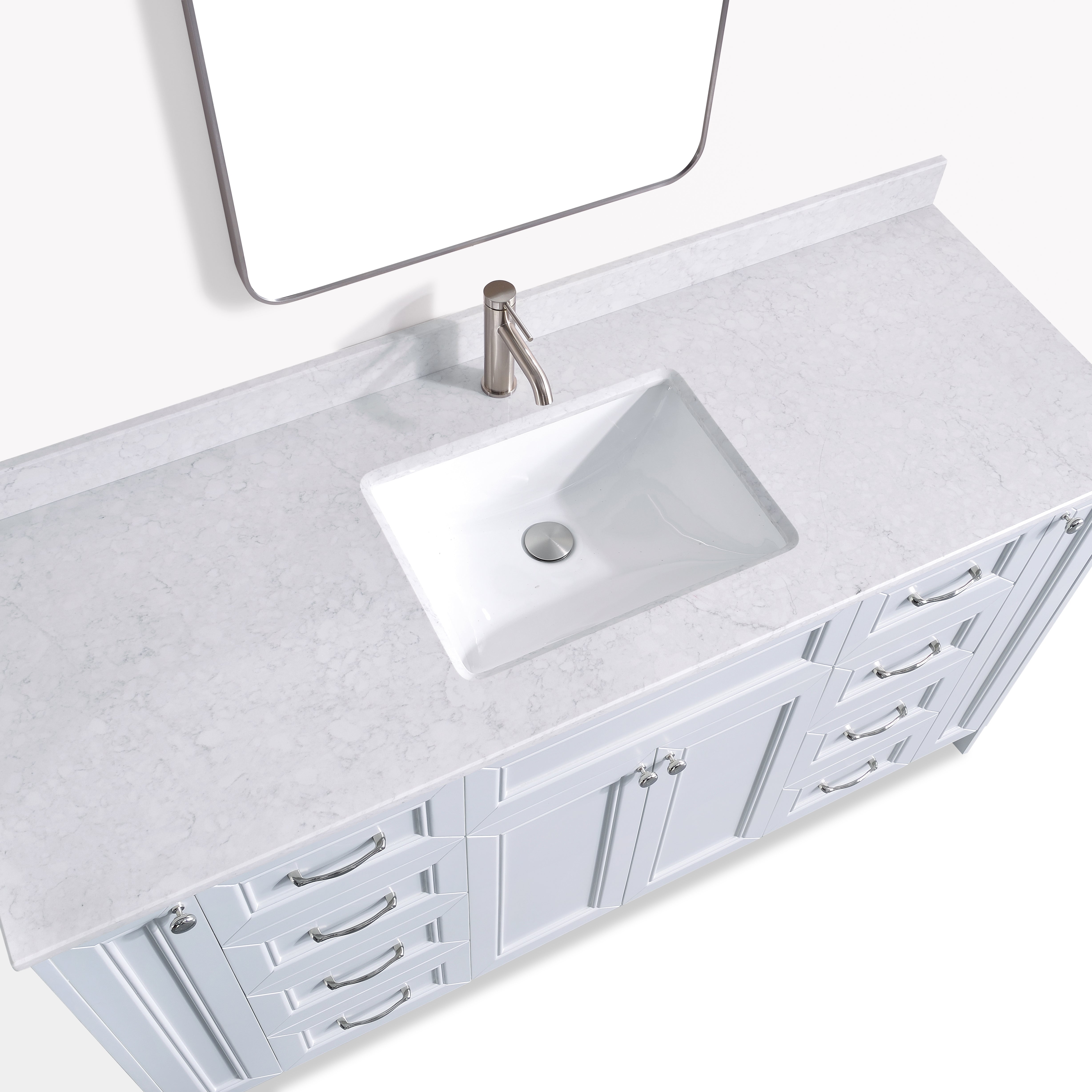 Premium Solid Quartz Countertop: A durable, non-porous quartz surface resists stains, moisture, and daily wear while delivering a clean, upscale look. Easy to maintain and built to last, it brings long-term value to any bathroom.