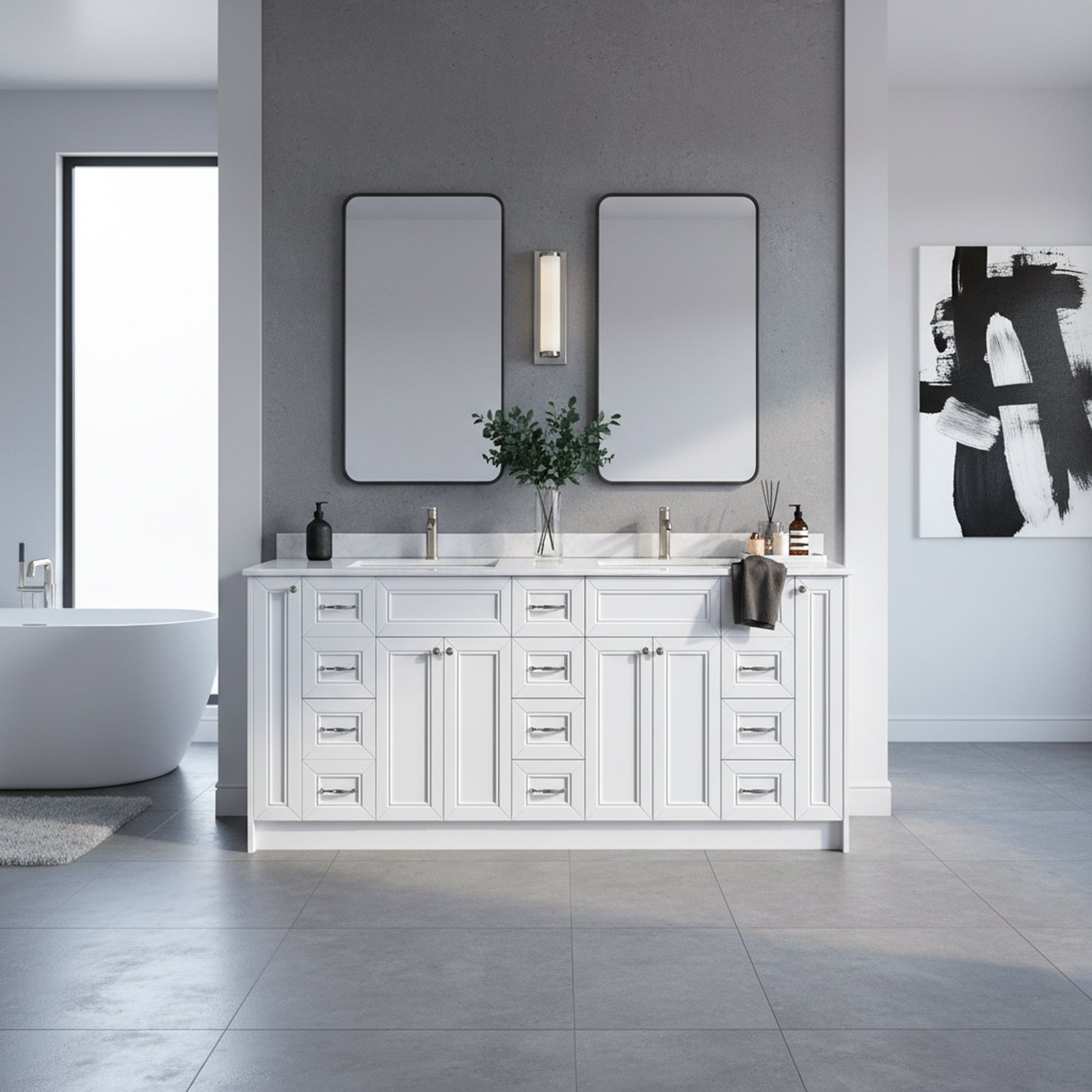 Premium Solid Quartz Countertop: A durable, non-porous quartz surface resists stains, moisture, and daily wear while delivering a clean, upscale look. Easy to maintain and built to last, it brings long-term value to any bathroom.